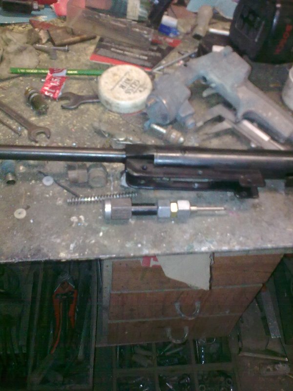 Musel som odstrániť originál spúšťací mechanizmus čínskej pušky a vybrúsiť vlastnoručne druhý.Pri výrobe mi pomohol aj risopepi-poslal mi kartušu na CO2 (díky