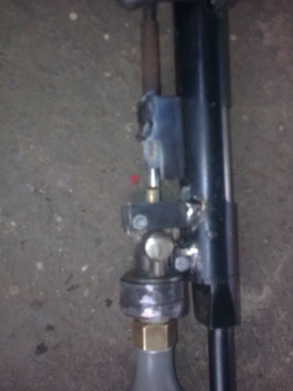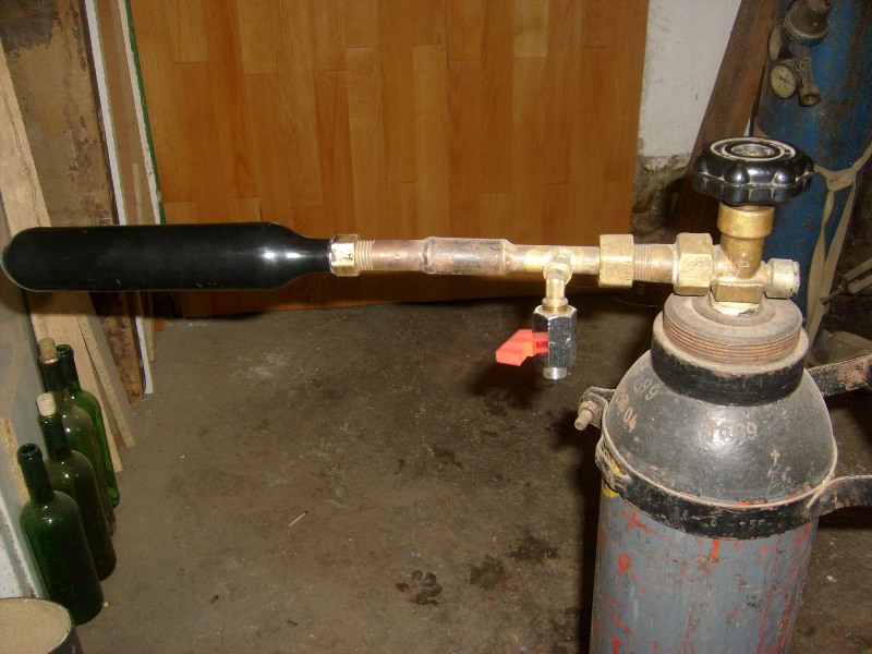 Mechanizmus na spustenie CO2 do pušky som zhotovil z vypúšťacieho ventilu praškového hasičáka.Kamarát- Beke Tibor,mi pomohol privariť trubice na niektoré veci,nakoľko je to z medi a ja nerobím s autogénom.