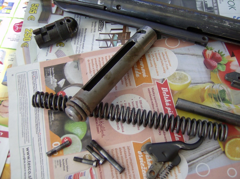 Na Tvojich nákresoch ten stredový šrób je dlhý. Pri používaní bude narážať na dno valca a "zanituje" sa. Šrób by nemal vyčnievať z matky, samotná matka by mala byť doraz. Je to taká slabá stránka tejto zbrane, lebo ak sa matica uvolní, nárazy zničia závit na šróbe, preto pri skladaní by som odporučil použiť nejaké lepidlo na závit proti uvľneniu, alebo inak zaistiť.